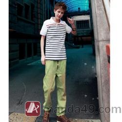 Amanda49 Fashionable Splash-Ink Style Light Green Cotton Long Trousers For Men |