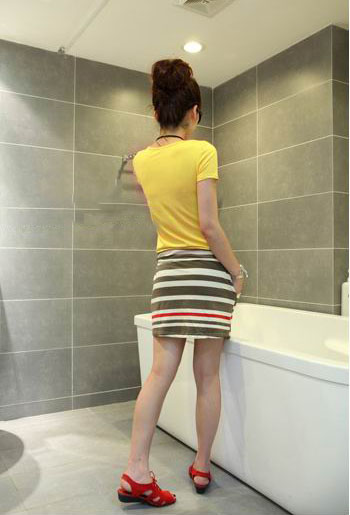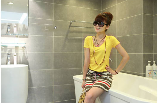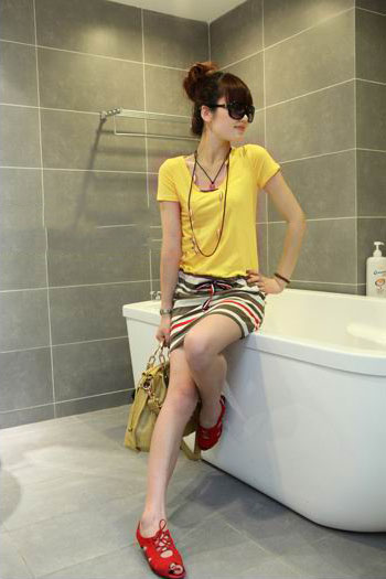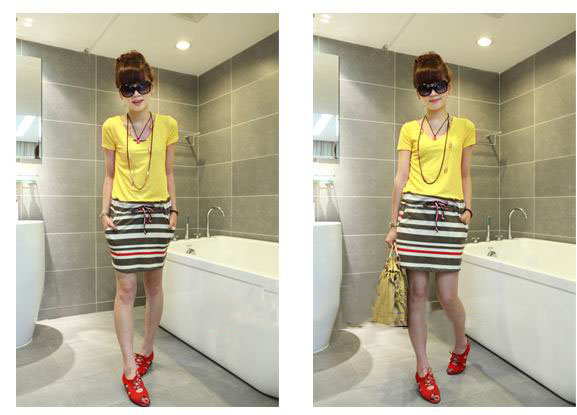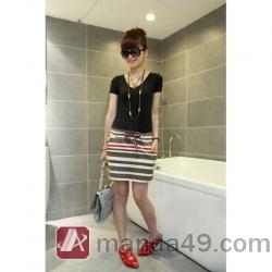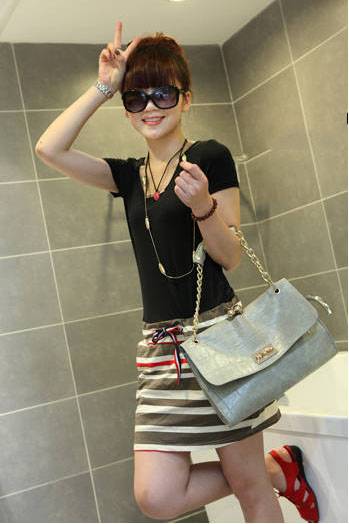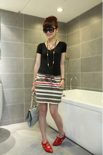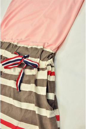 Amanda49 Fashionable Stripe Patterns Short Sleeve Stitching Dress |