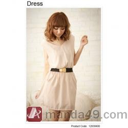 Amanda49 Fashionable V-Neck Apricot Chiffon Sleeveless Dress--Women's Dresses |