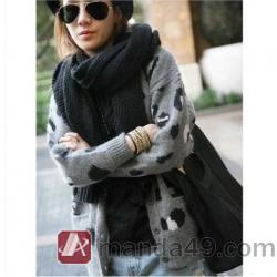 Amanda49 Fashionable V-Neck Double Pocket Leopard Grey Long Sleeves Coat For Women |