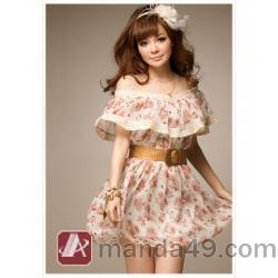 Amanda49 Fresh Style Flounced Double V-Neck Chiffon Short Dress--Women's Dresses |