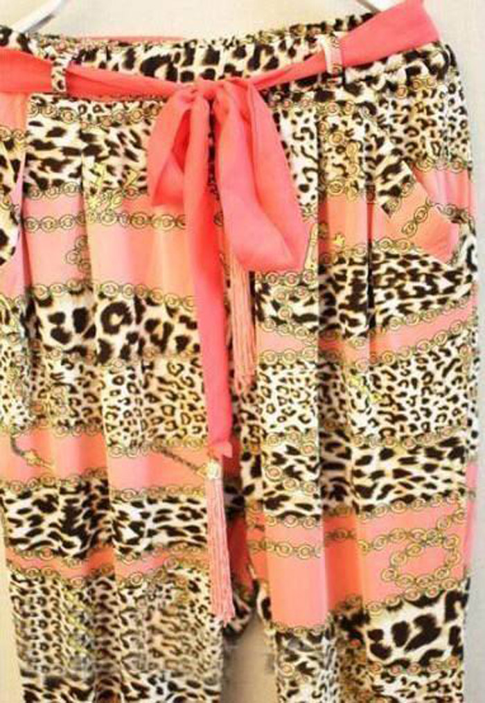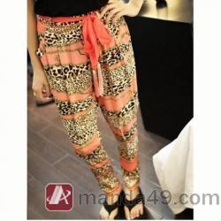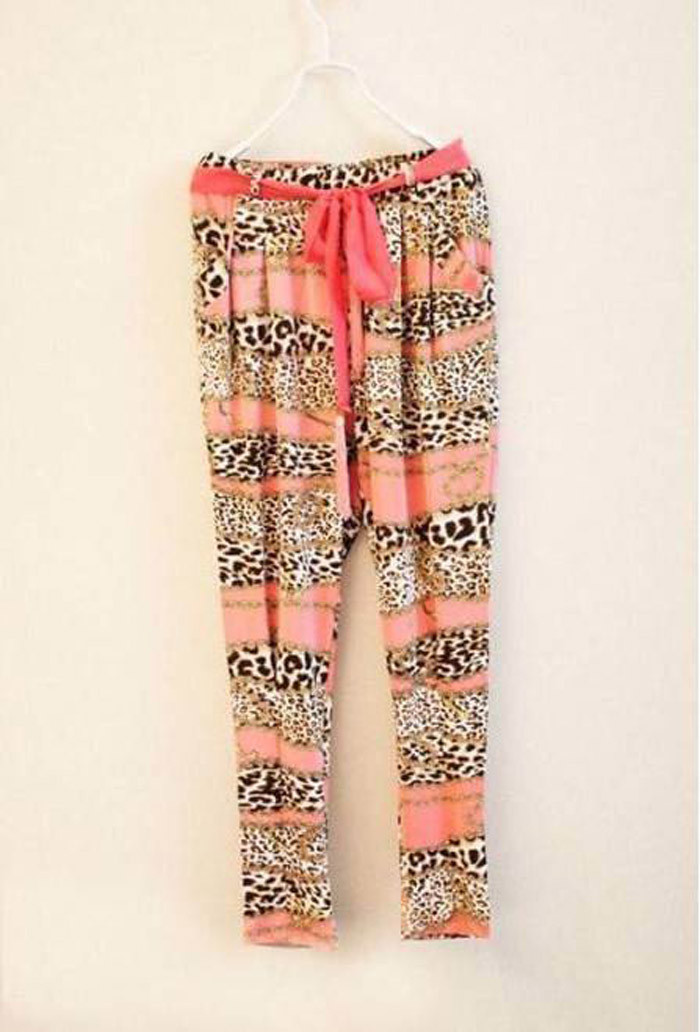 Amanda49 Frtro Style Leopard Panting Elastic Cotton Harem Pants |