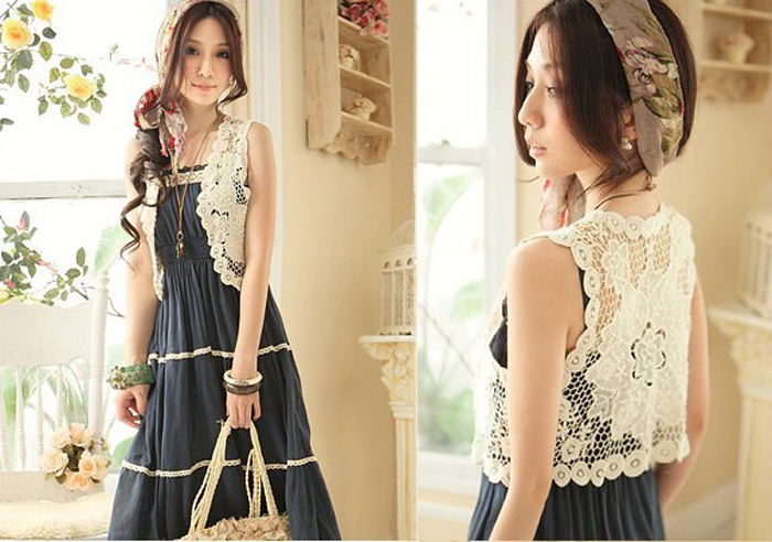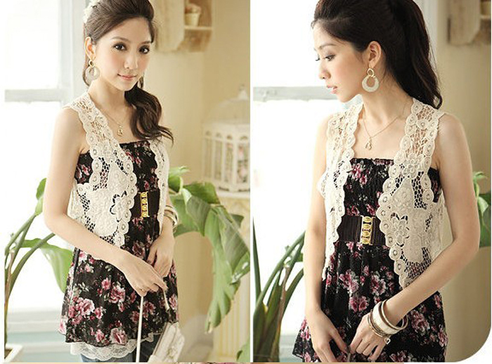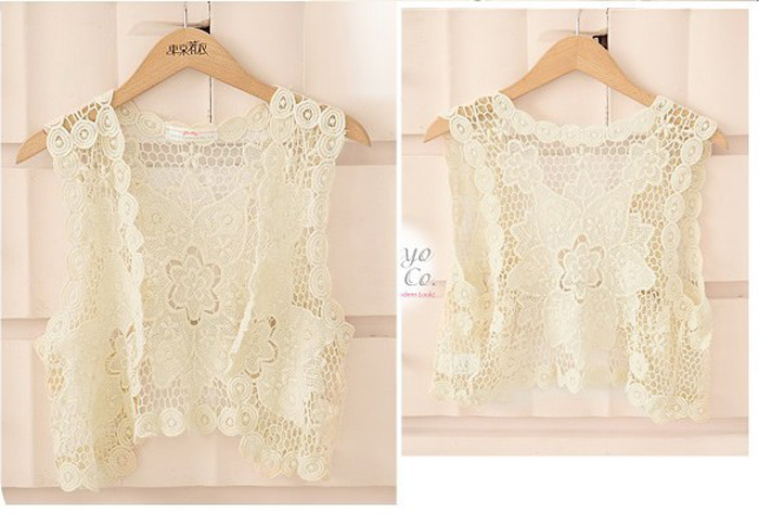 Amanda49 Graceful and Distinctive Crochet Design Off-White Lace Sleeveless Waistcoat |