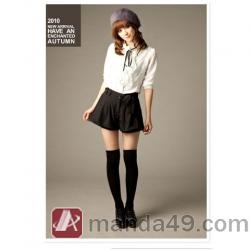 Amanda49 High Collar Gathered Chiffon White Half Sleeves Blouse--Women's Blouses |