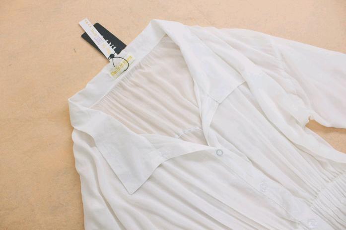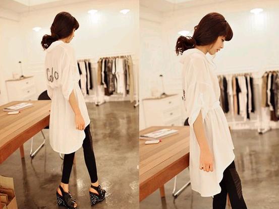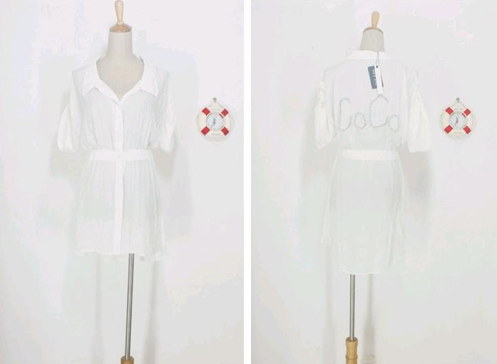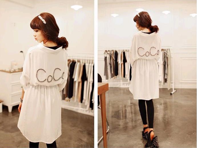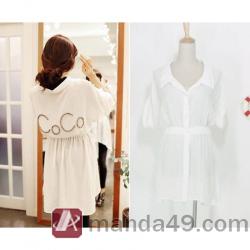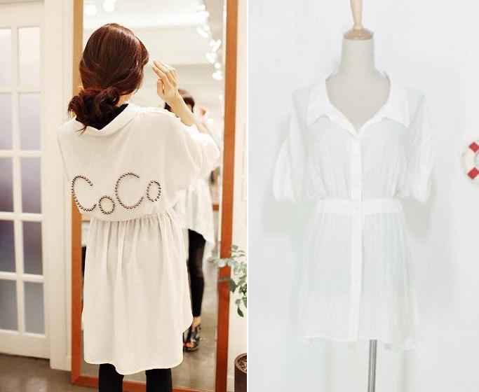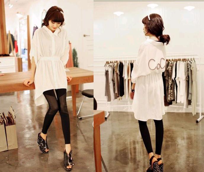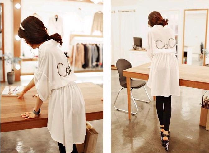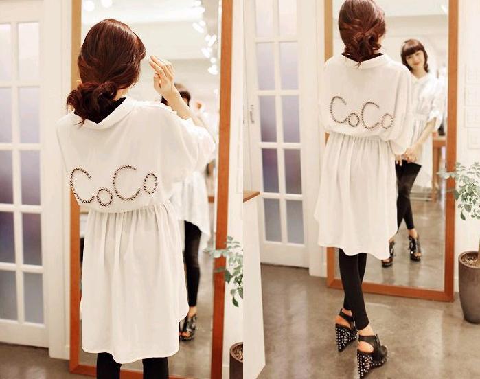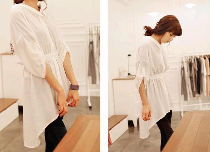 Amanda49 High Elastic Waist Design Bead Embellished Back Long Blouse |