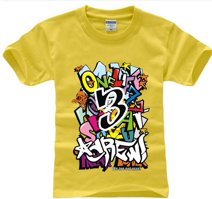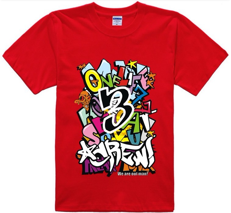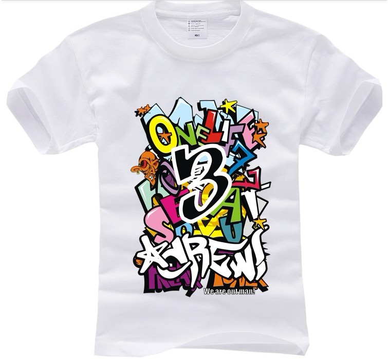 Amanda49 Hip Hop Style Street Fashion Colorful Fabric Stickers Embellished Round Neckline Elastic Cotton T-Shirt |