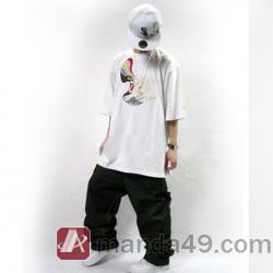 Amanda49 Hip Hop Style Street Fashion Facial Masks Embroidered Round Neckline Cotton + Ramie Short Sleeve T-Shirt |
