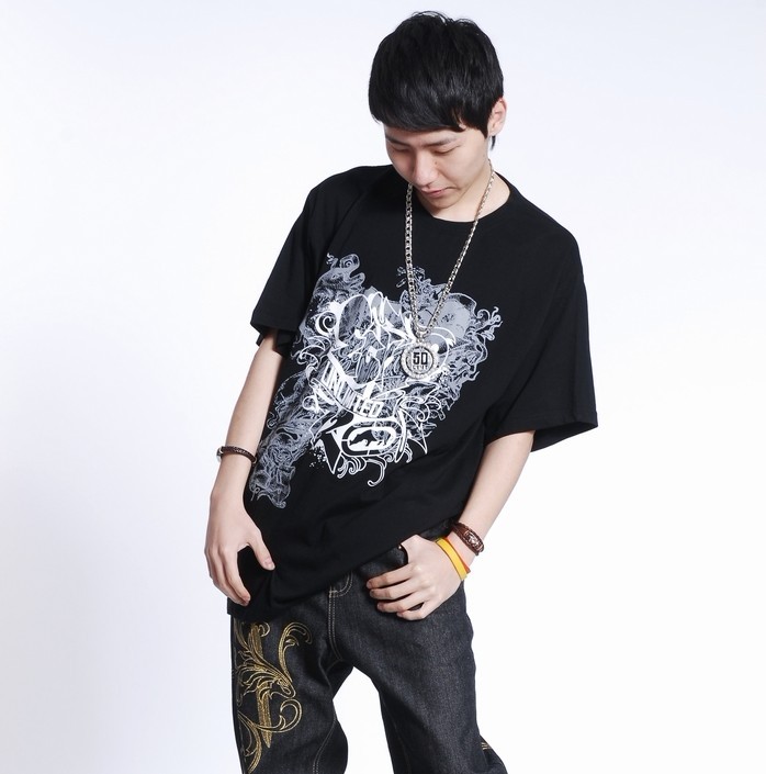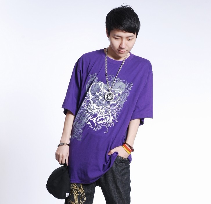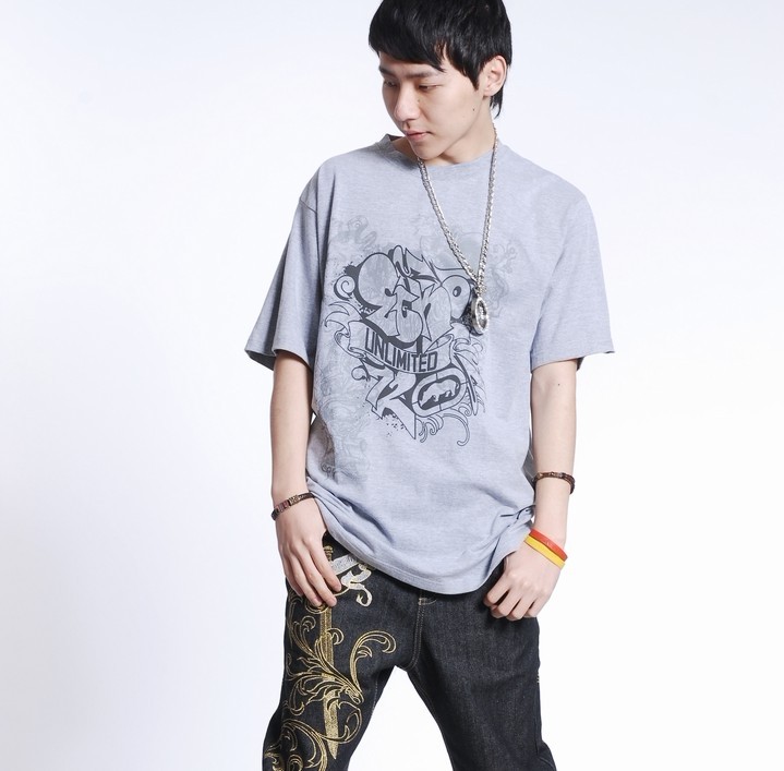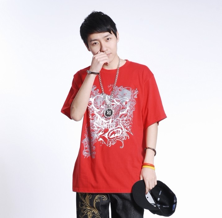 Amanda49 Hip Hop Style Street Fashion Red Patterns Round Neckline Elastic Cotton T-Shirt |