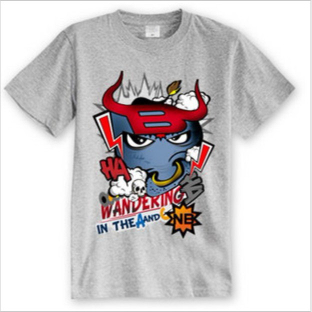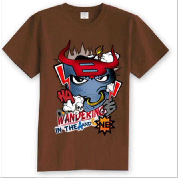 Amanda49 Hip Hop Style Street Fashion Rhinoceros Printing Round Neckline Short Sleeve T-Shirt |