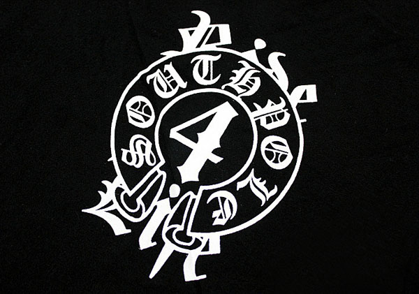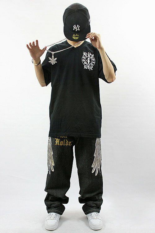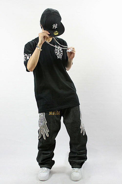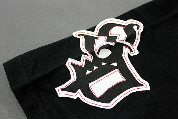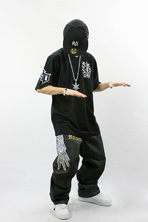 Amanda49 Hip Hop Style Street Fashion V-Neckline Fabric Stickers Embellished Round Neckline Short Sleeve T-Shirt |