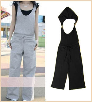 Amanda49 Hot Sale Korea Fashion Stylish Round Neckline Sleeveess Hooded Jumpsuit |