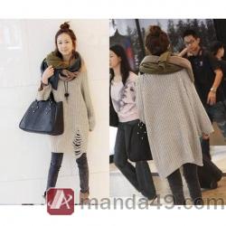 Amanda49 Korea Fashion Ripped Hem Design Long Bodkin Sweater |