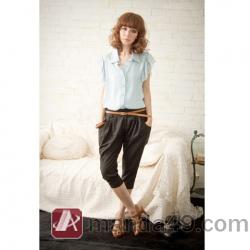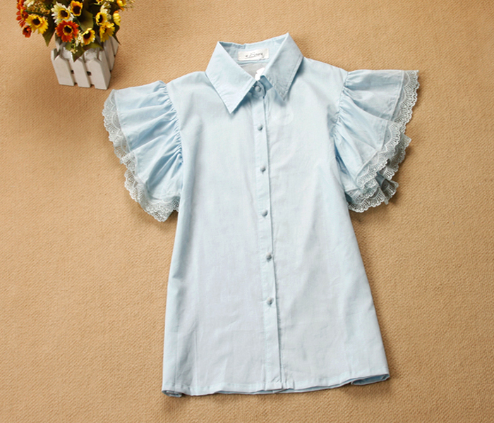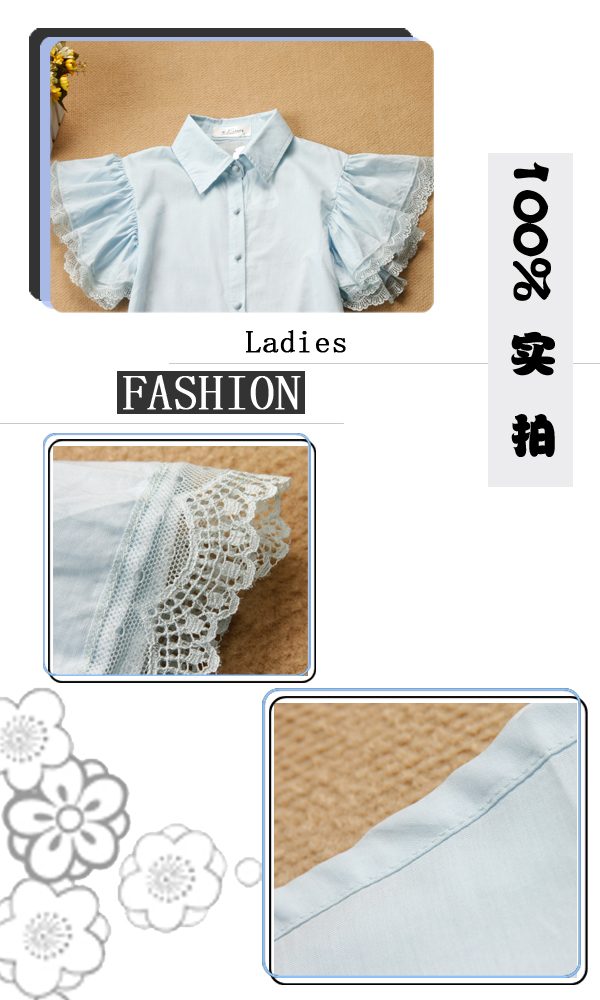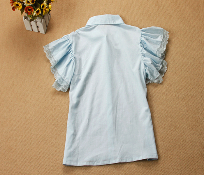 Amanda49 Korea Fashion Simple Design Lace Embellished Cuff Short Sleeve Shirt |