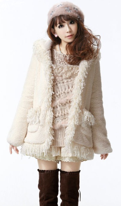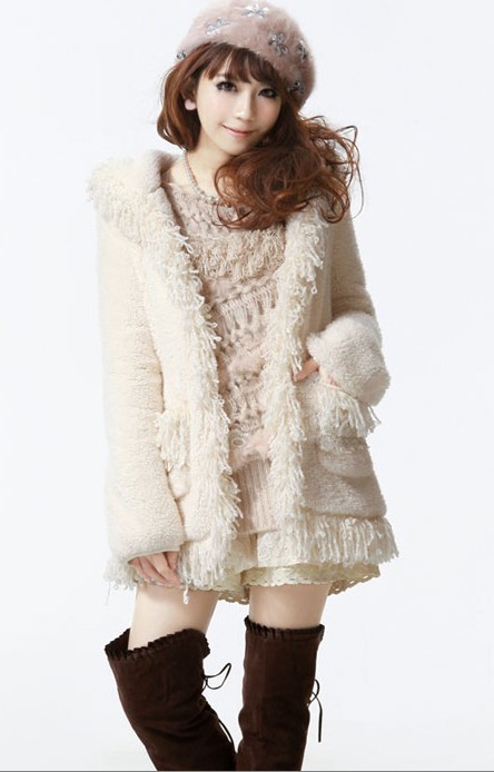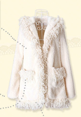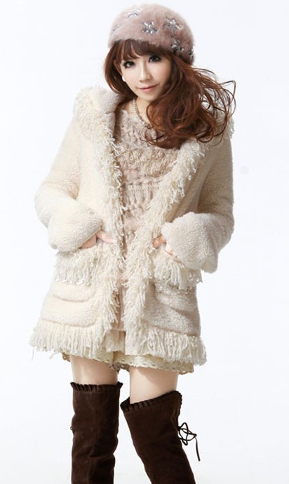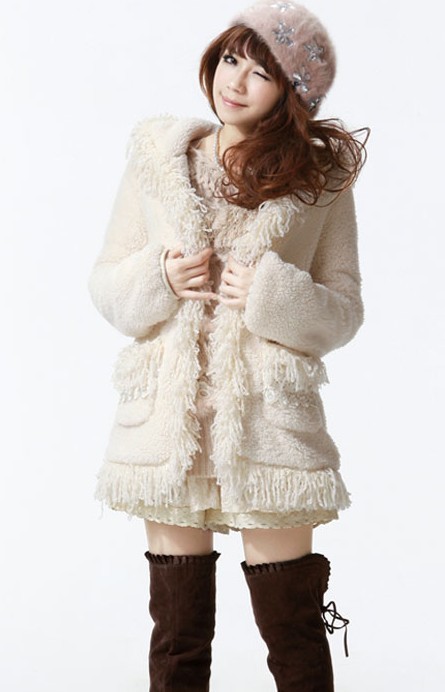 Amanda49 Korea Fashion Stylish and Warm Lace and Tassel Embellished Hem Long Sleeve Coat |