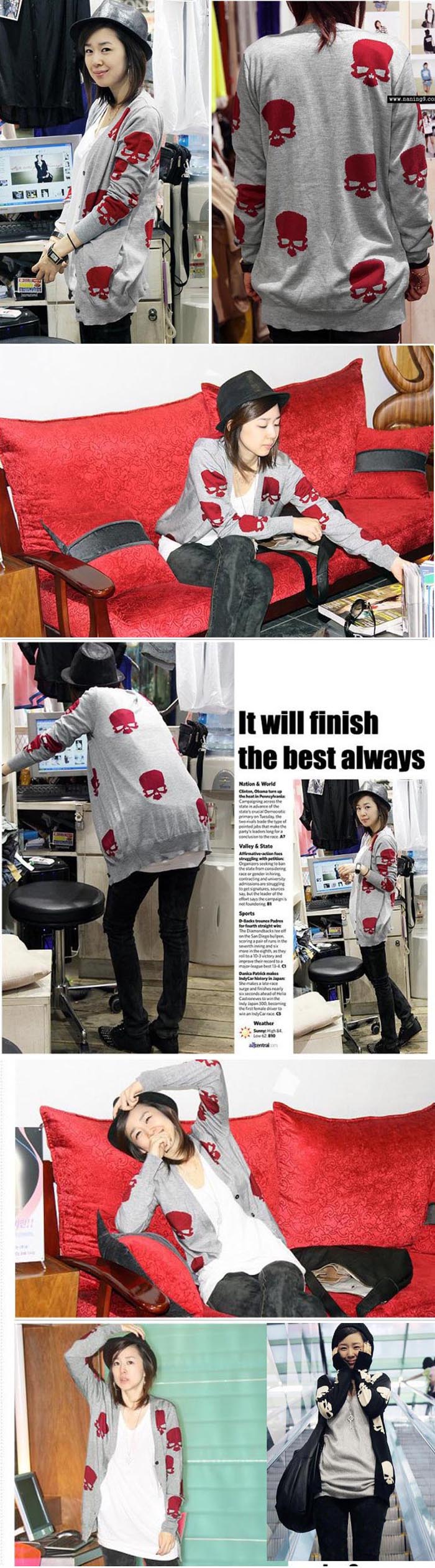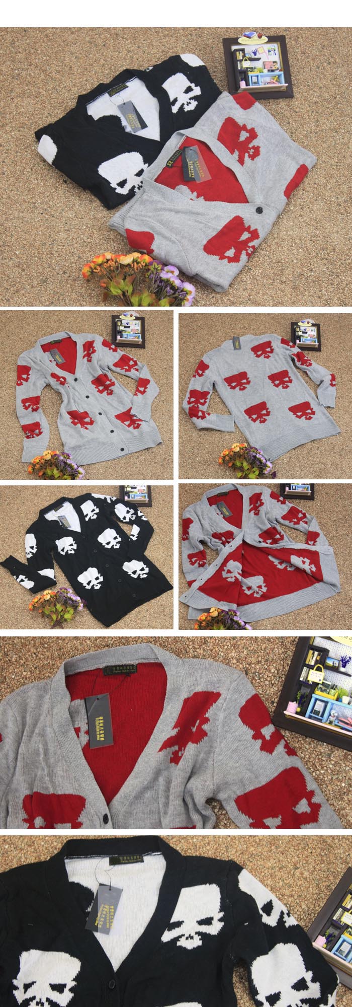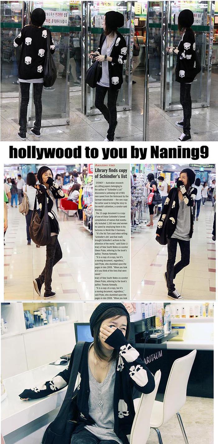 Amanda49 Korea Style V-Neck Series Ghost Patterns Long Sleeves Knitting Coat For Women |