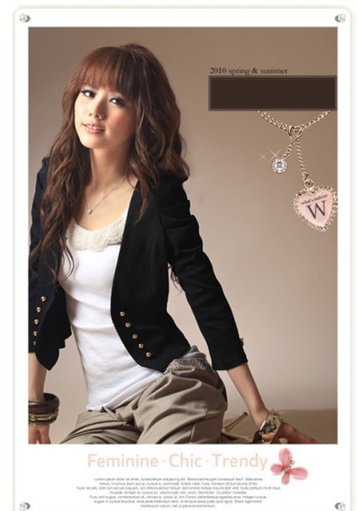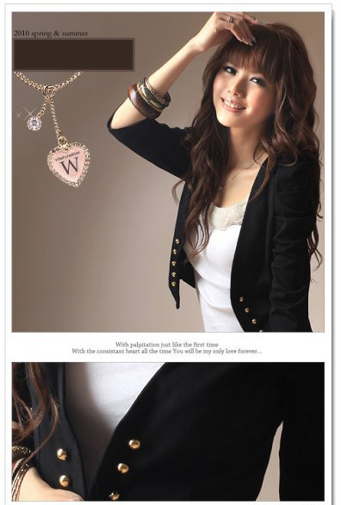 Amanda49 Korean Style Double Row Button Embellish Long Puff Sleeve Short Coat |