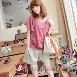 Amanda49 Laconic Pink Cotton Two-Piece Short Sleeve Blouse |