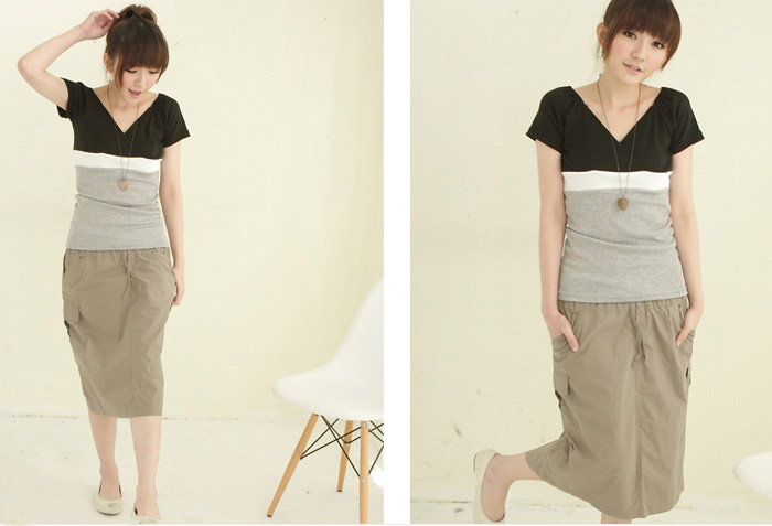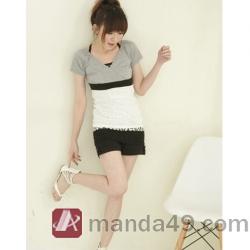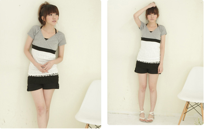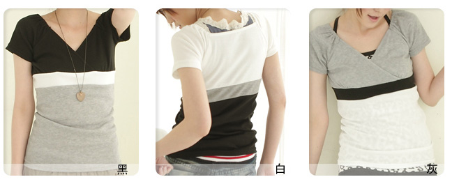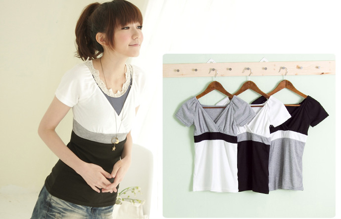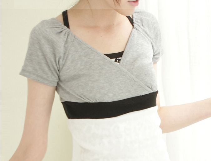 Amanda49 Laconic V-Neckline Elastic Cotton Short Sleeve Blouse |