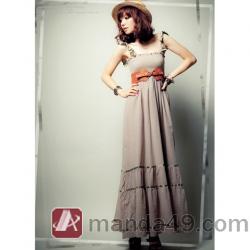 Amanda49 Leaves Shoulder Belt Design Brown Cotton Maxi Dress--Women's Dresses |