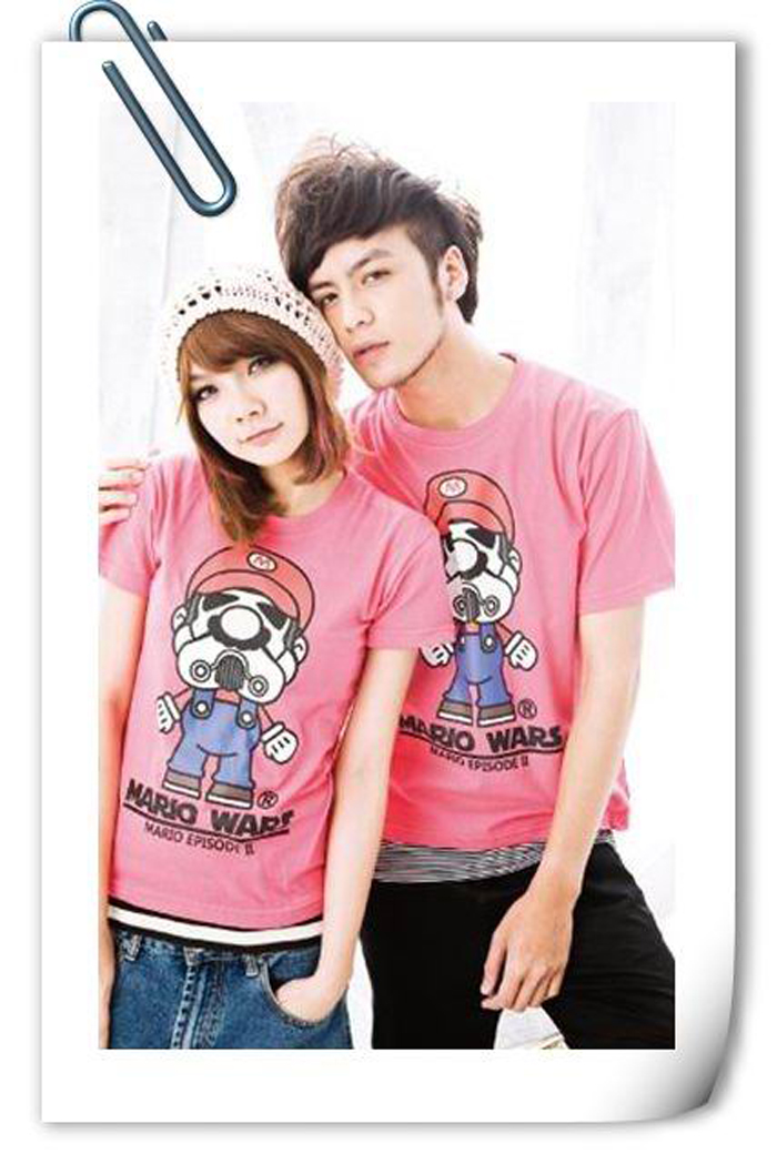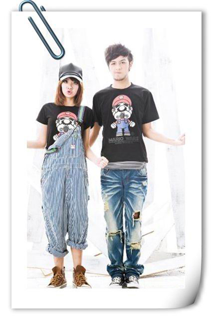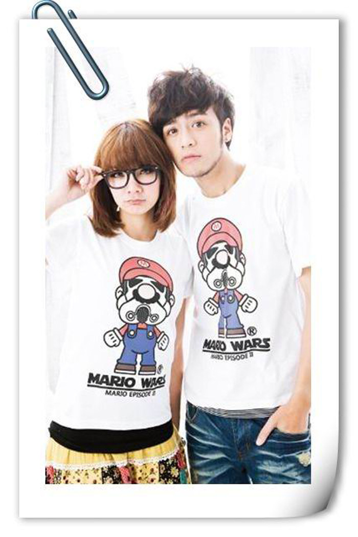 Amanda49 Leisure and Cut Mario Pattern Round Neckline Short Sleeves Cotton Couple T-Shirt For Lovers |