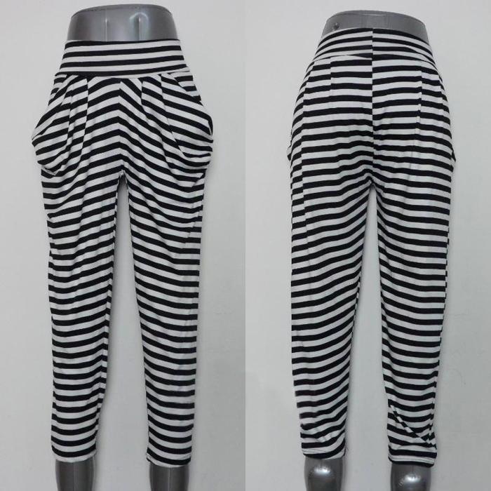 Amanda49 Leisure and Stylish Transverse Stripe Patterns Cotton Feet Harem Pants For Women |