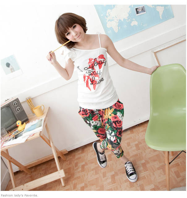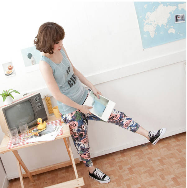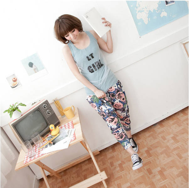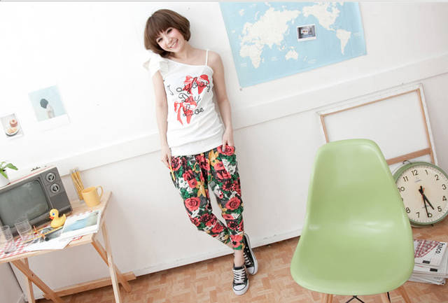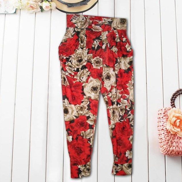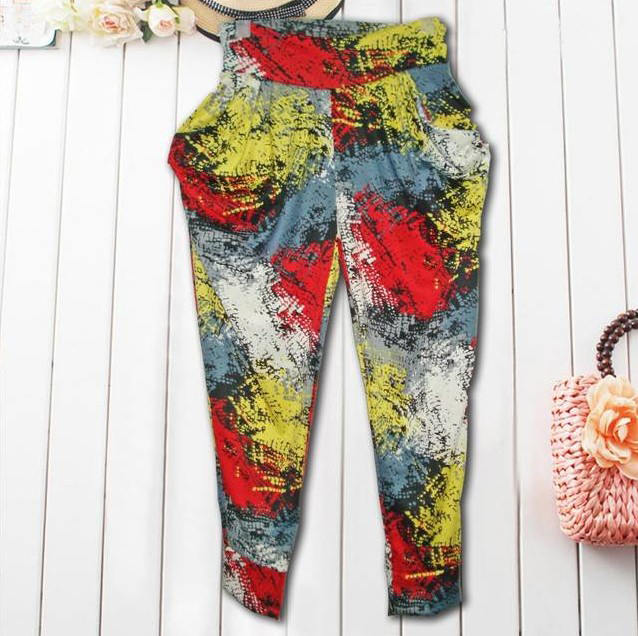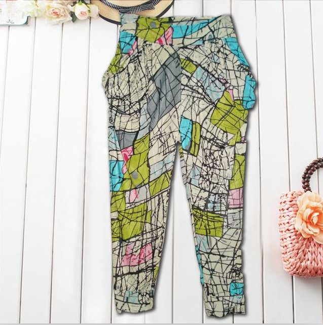 Amanda49 Leisure Difference Patterns Style Mix Match Cotton Harem Pants For Women |