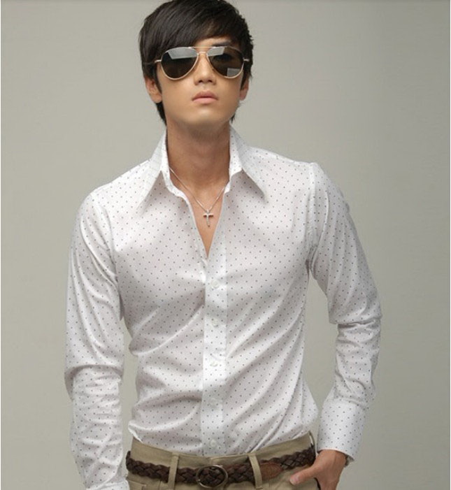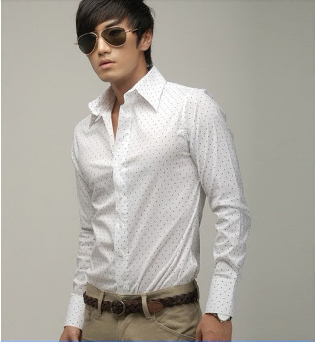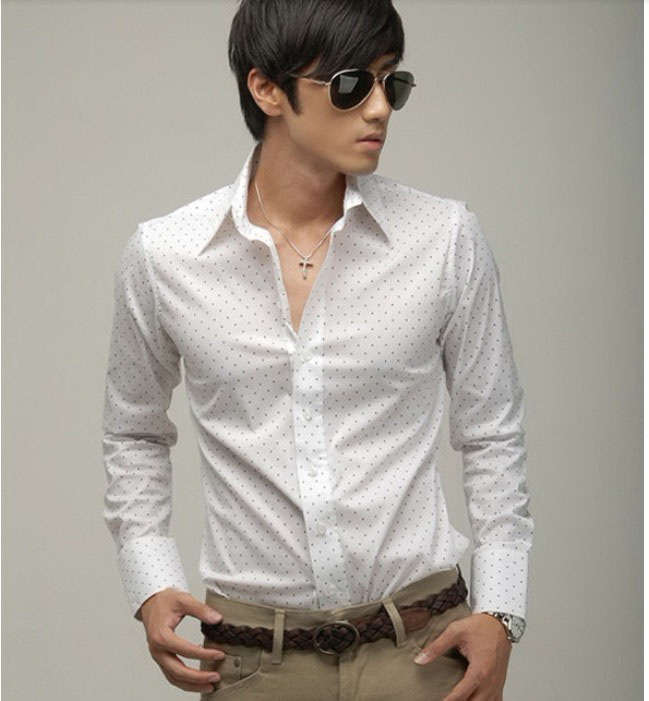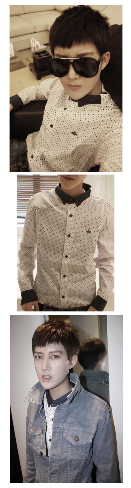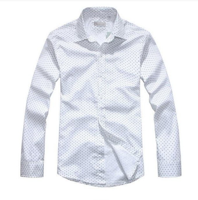 Amanda49 Leisure Dots Pattern White Long Sleeves Cotton Blouse For Men |