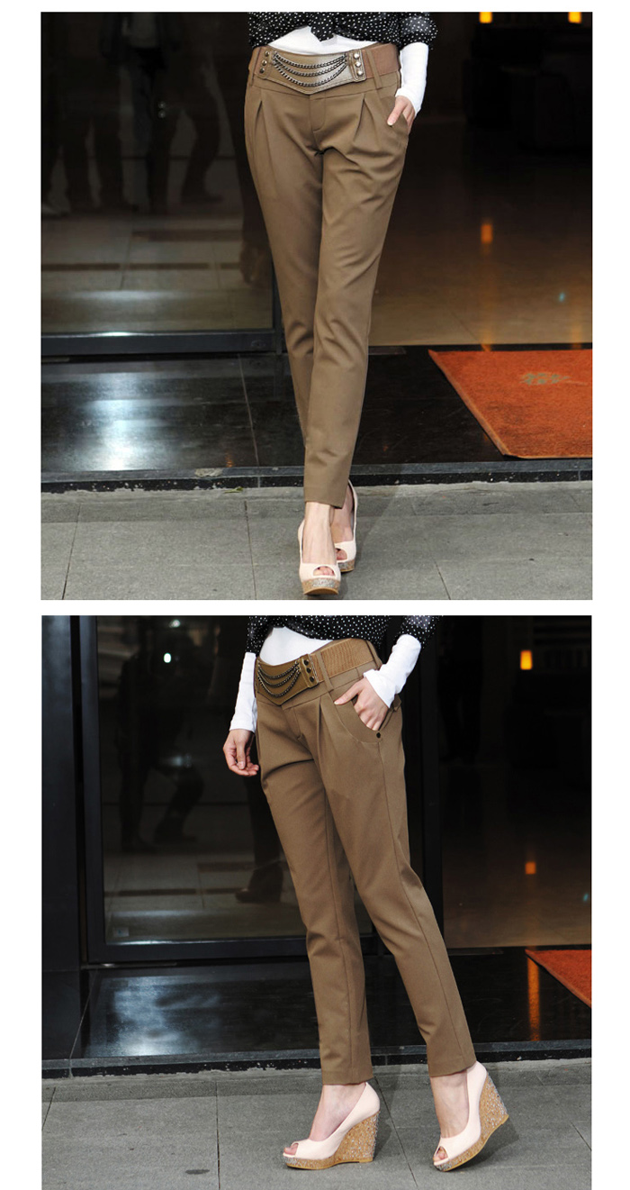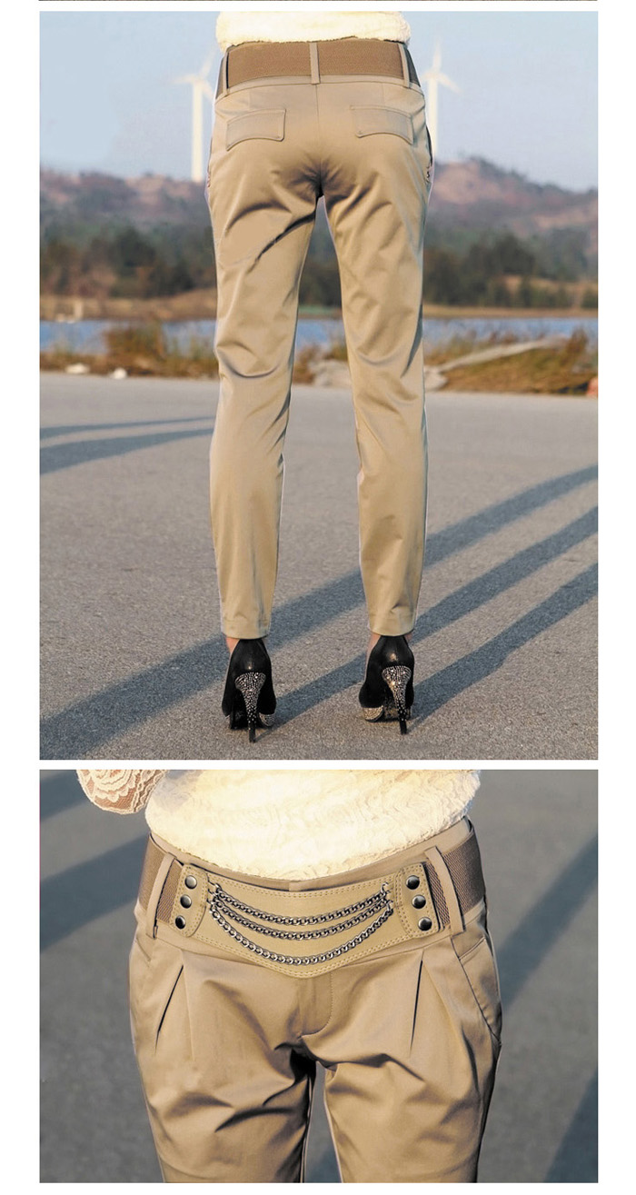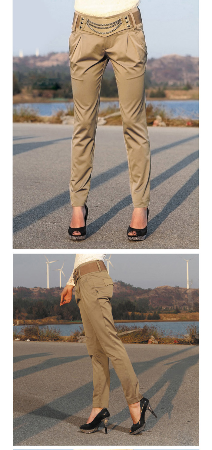 Amanda49 Leisure Elastic Waist Cotton Blend Fabric+Twill Feet Pants For Women |
