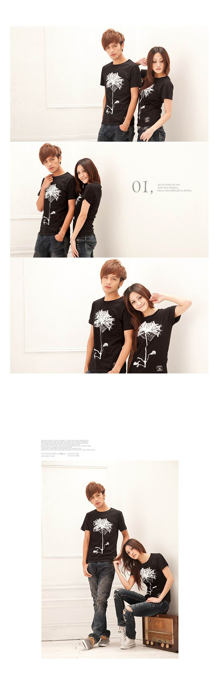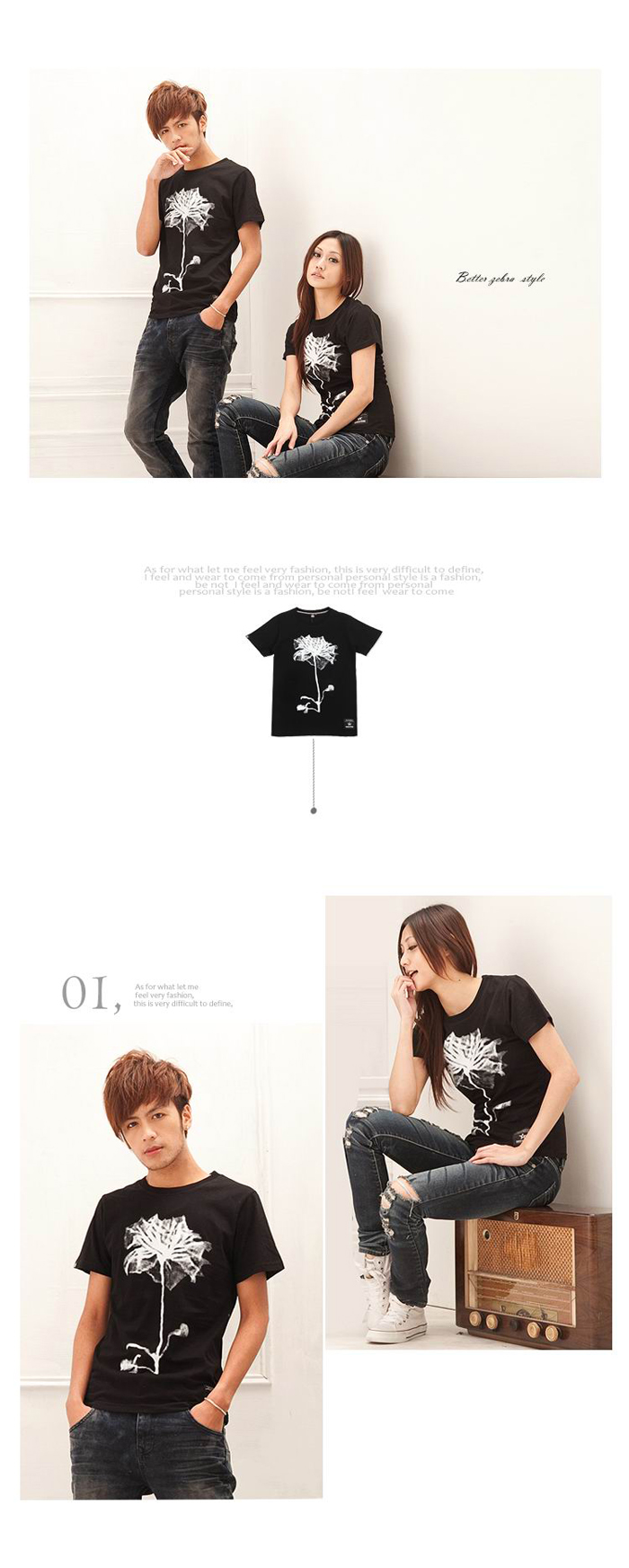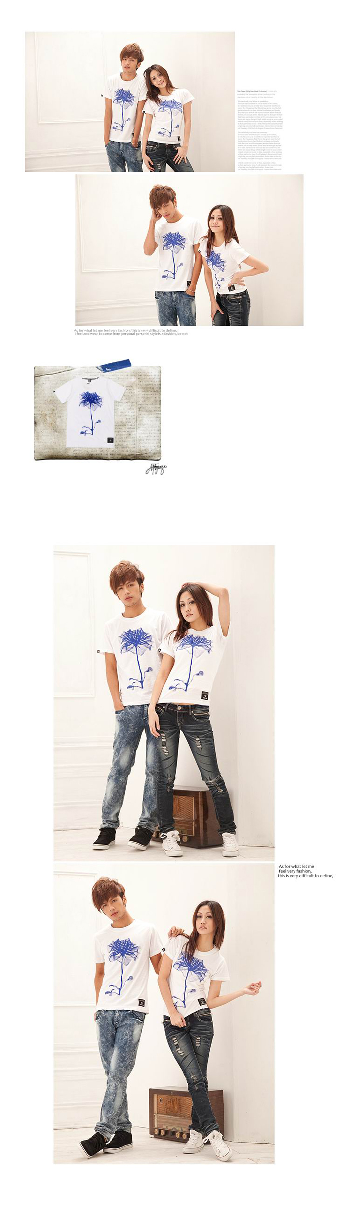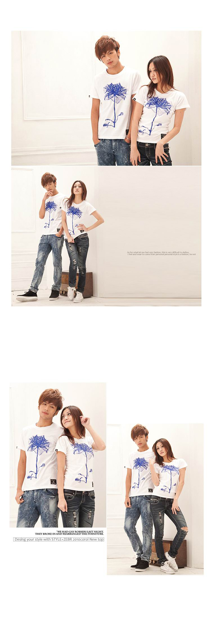 Amanda49 Leisure Flower Pattern Round Neckline Short Sleeves Couple T-Shirt For Lovers |