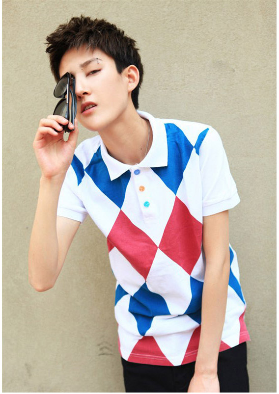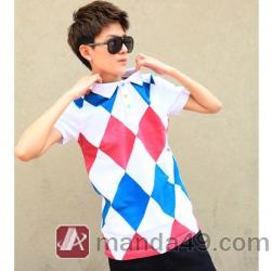 Amanda49 Leisure Grid Style Short Sleeves Cotton Fabric Blouse For Men |
