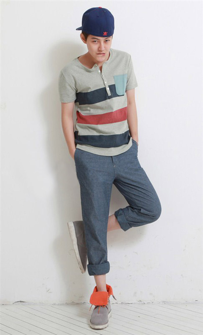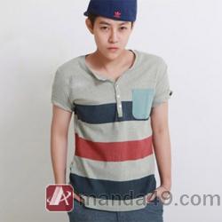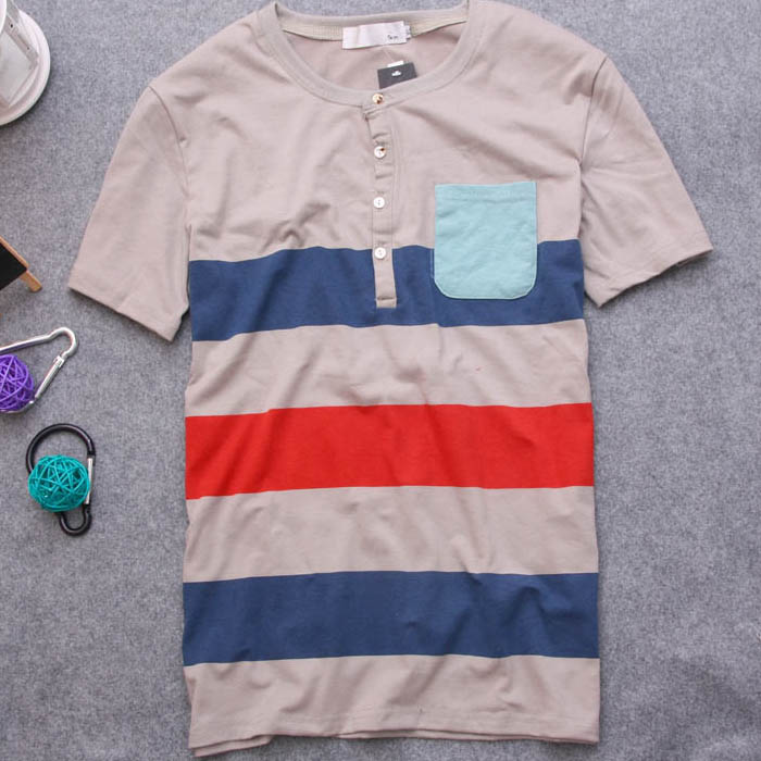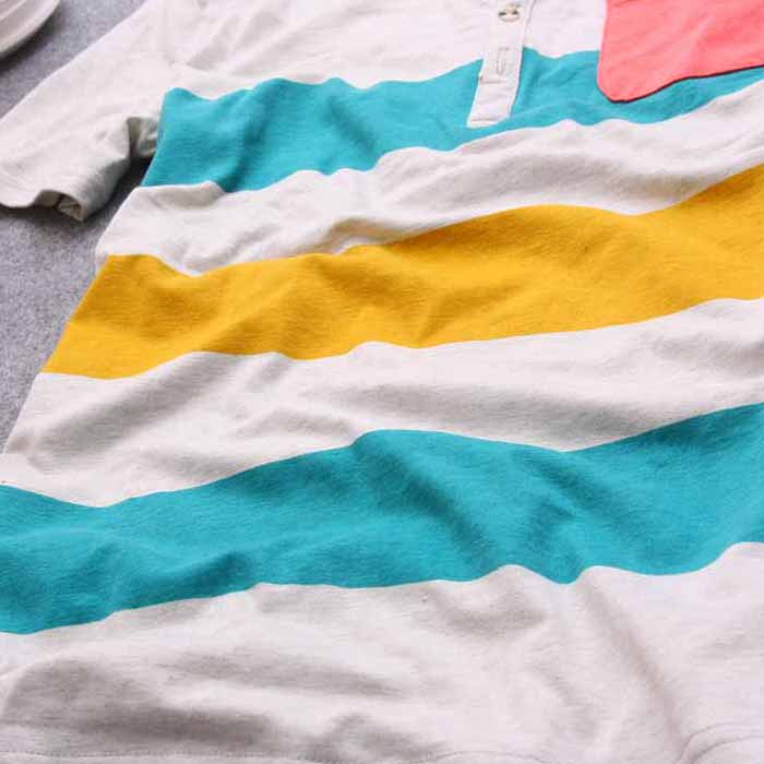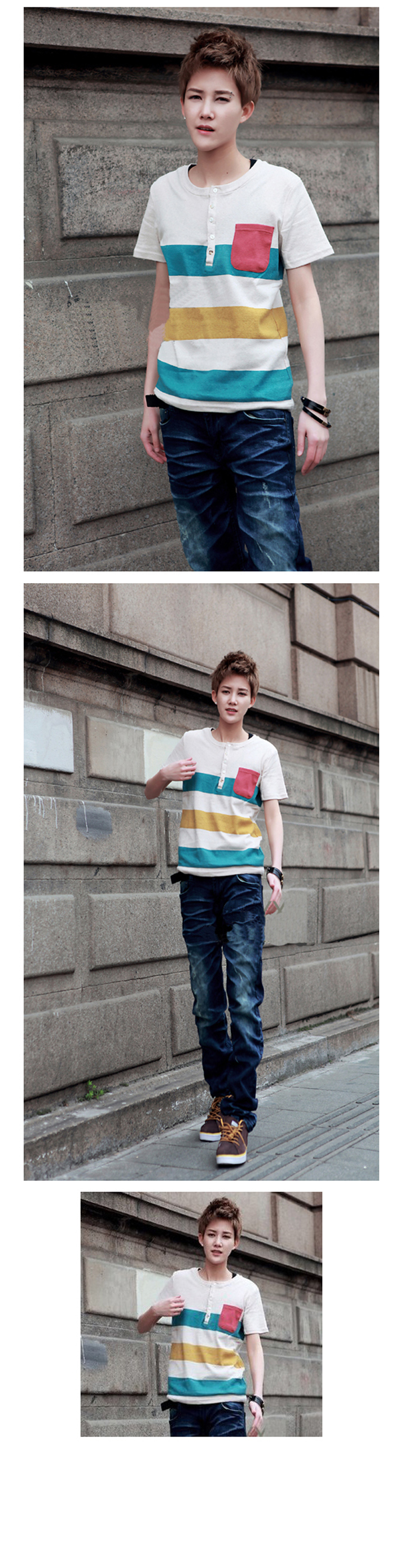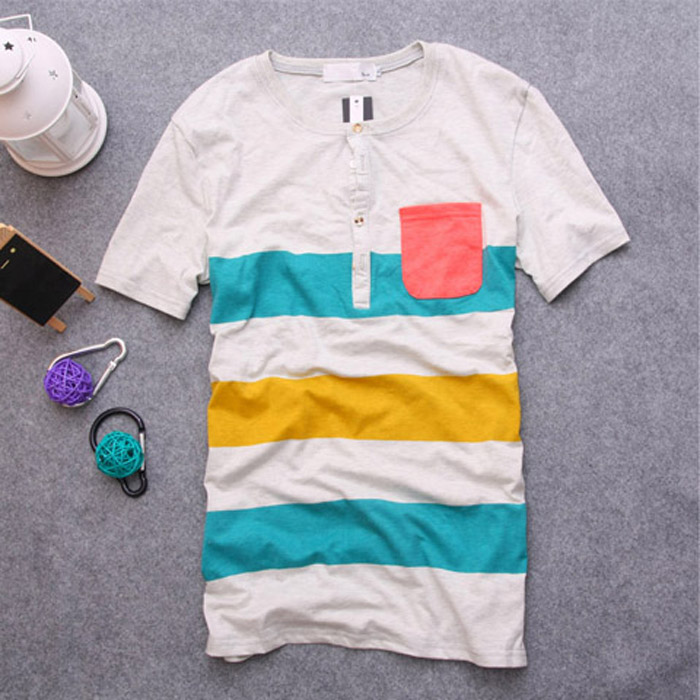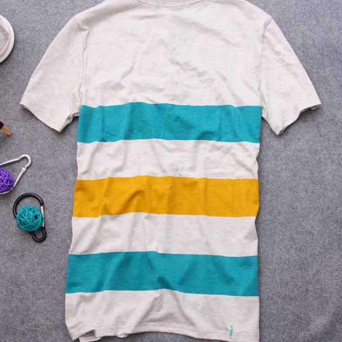 Amanda49 Leisure Round Neckline Colorful Stripes Cotton T-Shirt For Men |
