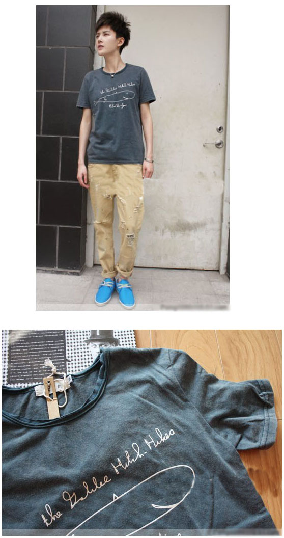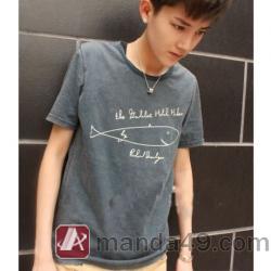 Amanda49 Leisure Round Neckline Shark Cartoon Printed Short Sleeves Elastic Cotton T-Shirt For Men |