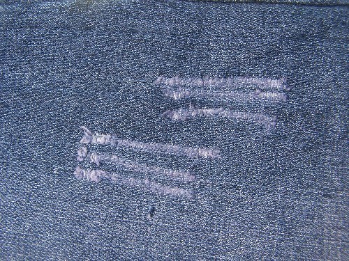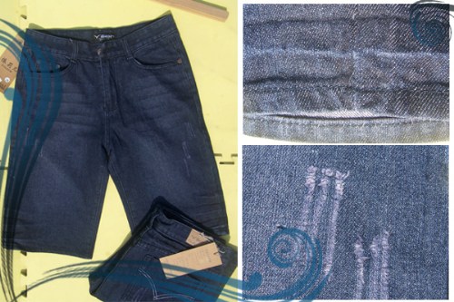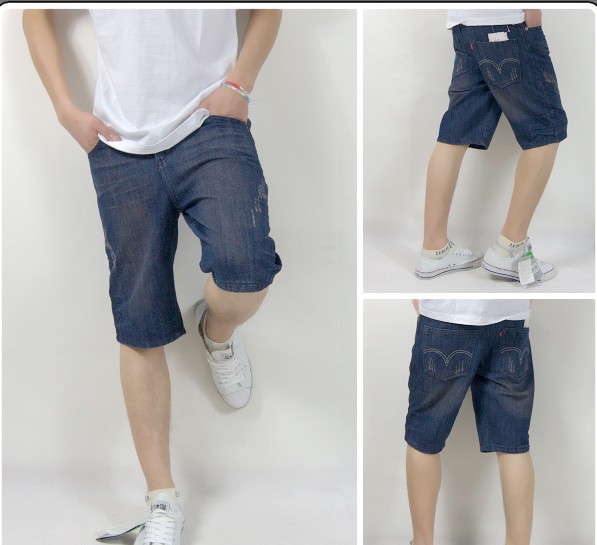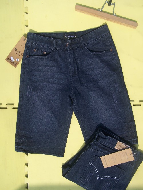 Amanda49 Leisure Scratch Embellished Dark Blue Quarter Jeans For Men |
