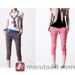 Amanda49 Leisurely and Comfortable Low Waist Cropped Trousers |
