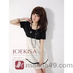 Amanda49 Loose and Comfortable Cotton + Lace Short Sleeve Dress--Women's Dresses |