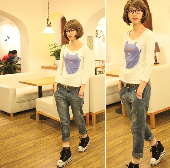 Amanda49 Loose and Comfortable Washed Mill White Straight Jeans |