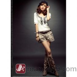 Amanda49 Lotus Crochet Design Collar Half Sleeves Blouse (White) |