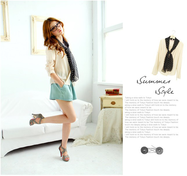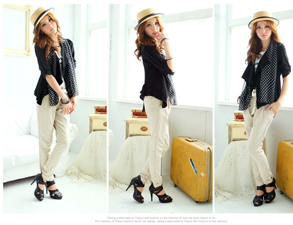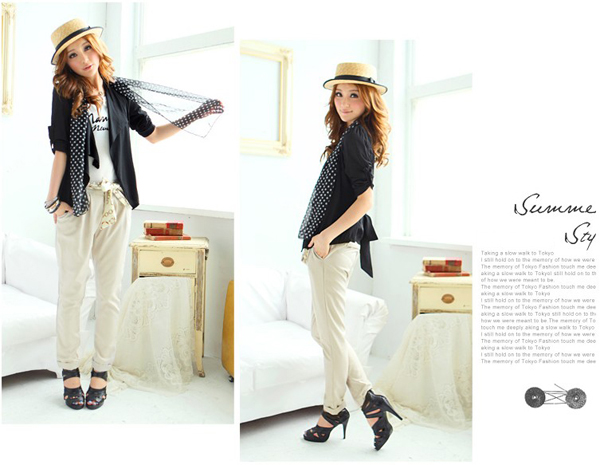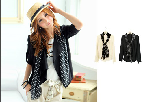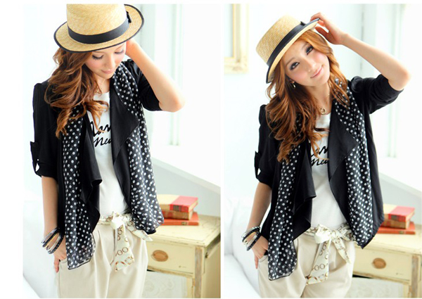 Amanda49 Lovely and Unique Style Dot Pattern Bandage Decorated Cuff Hem Coat For Female |