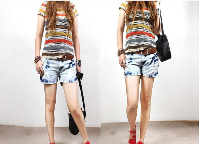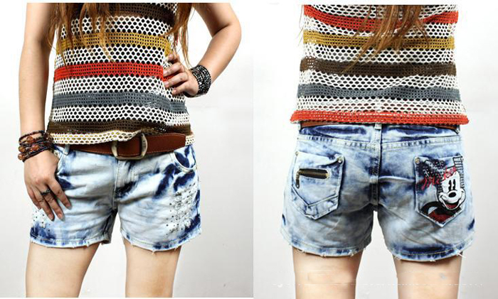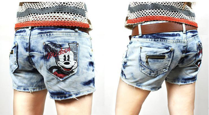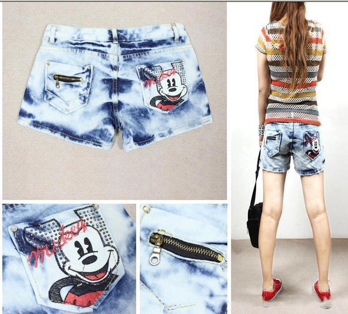 Amanda49 Lovely cartoon design Pocket Destroyed Wash Jeans |