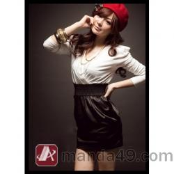 Amanda49 Low V-Neckline Puff Sleeves High Elastic Waist Tight Dress |