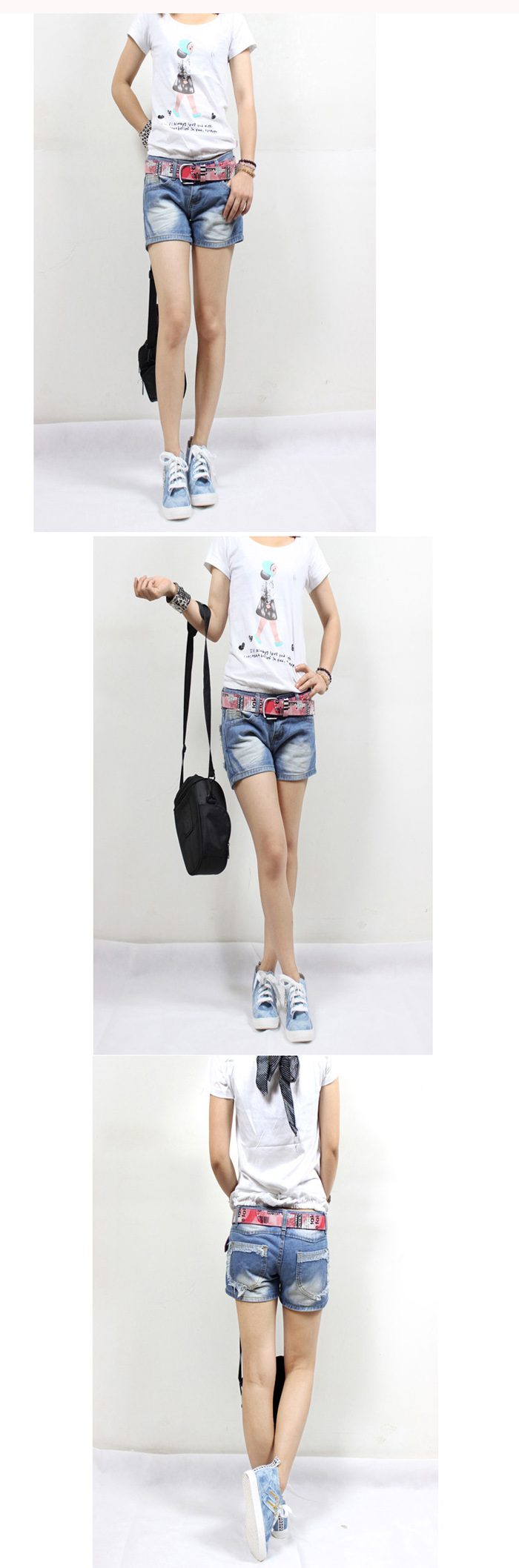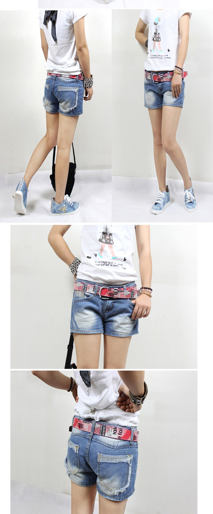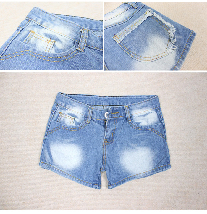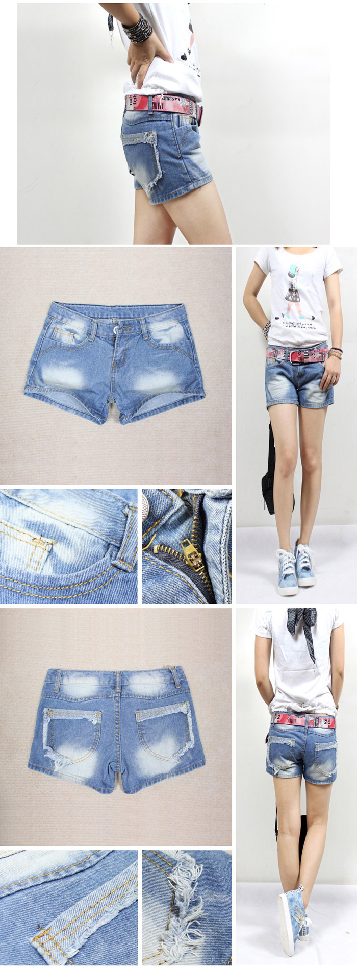 Amanda49 Mix Match Simple Style Rough Selvedge Pocket Hem Light Blue Short Jeans For Women |