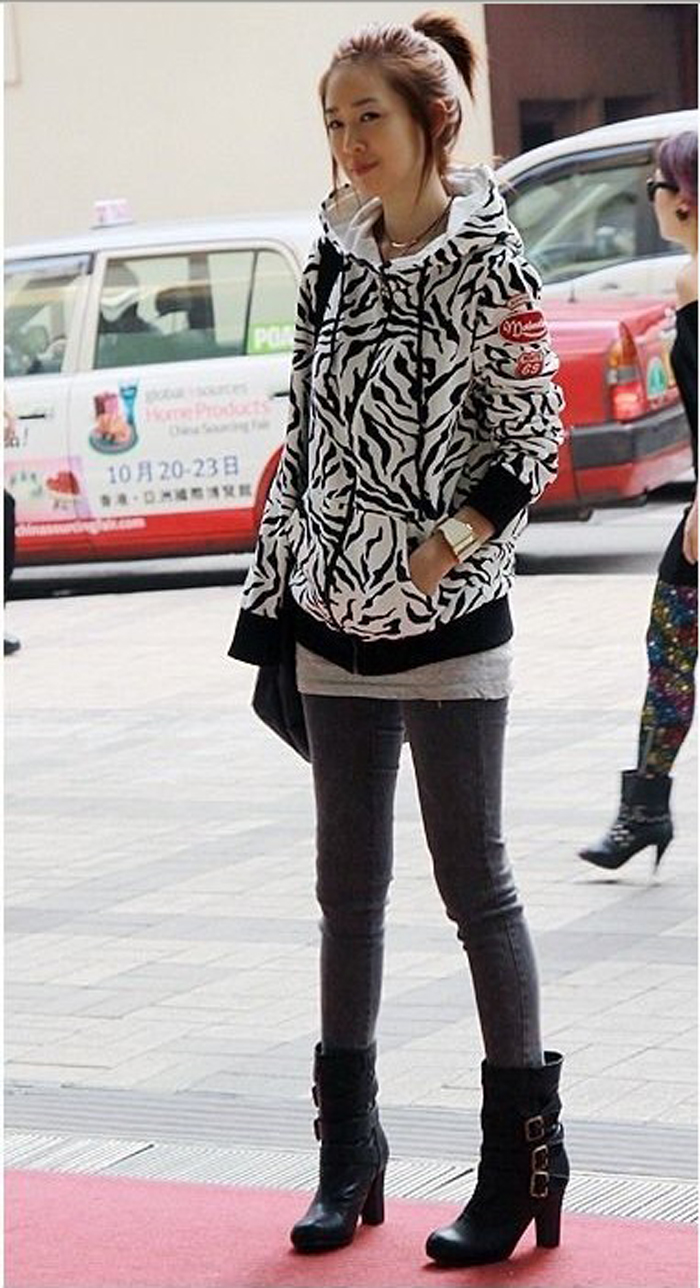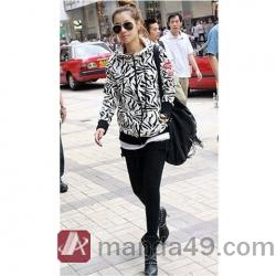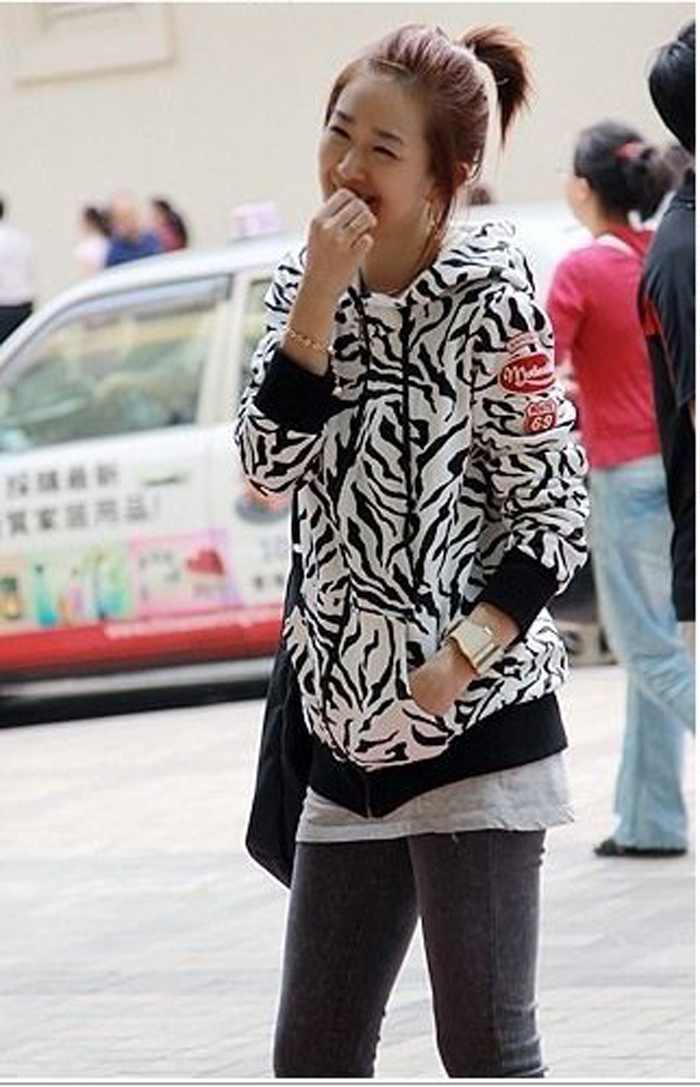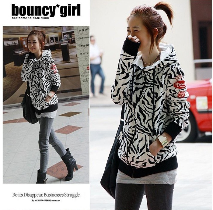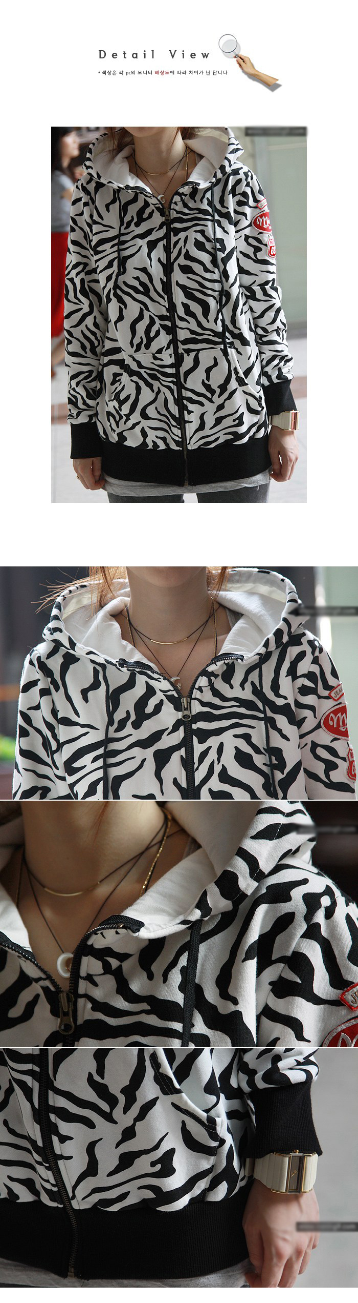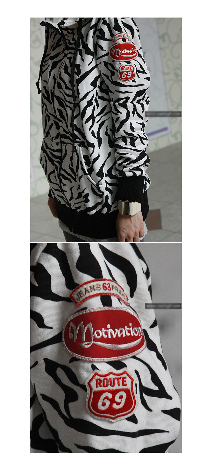 Amanda49 Mix Match Zebra Style Zipper White Long Sleeves Thicken Blouse For Women |