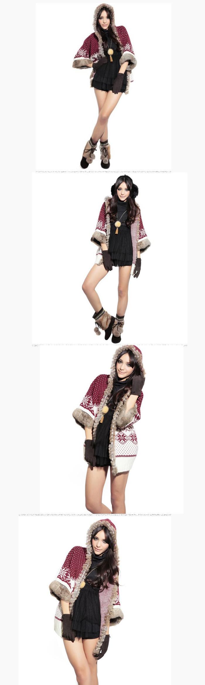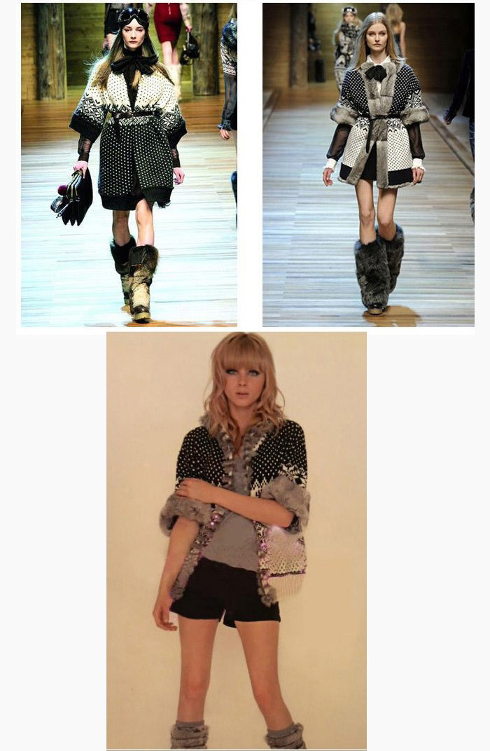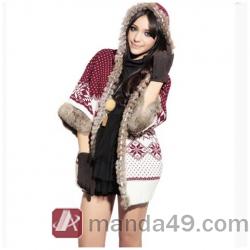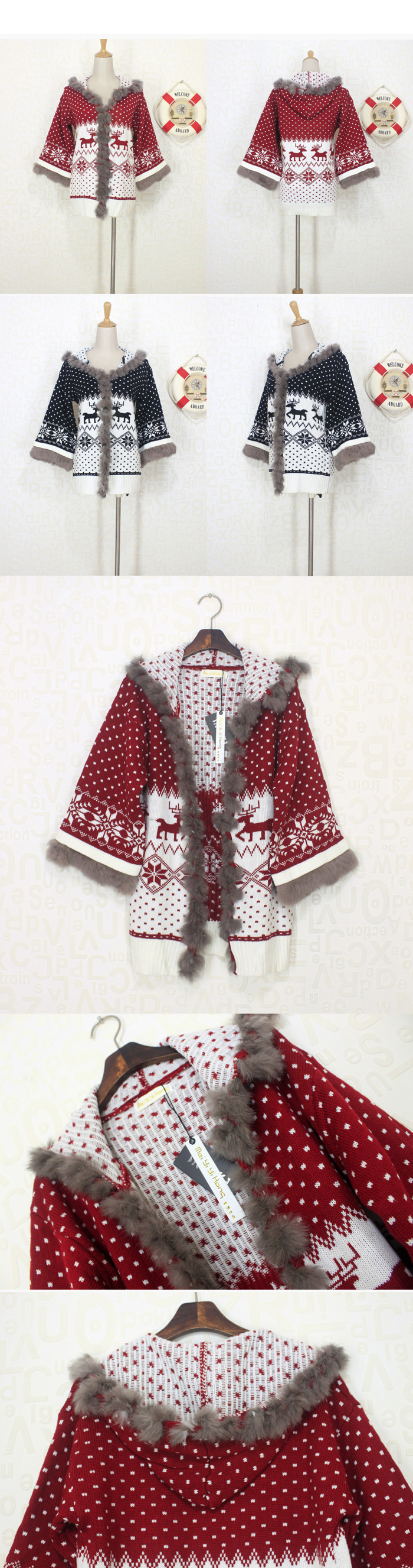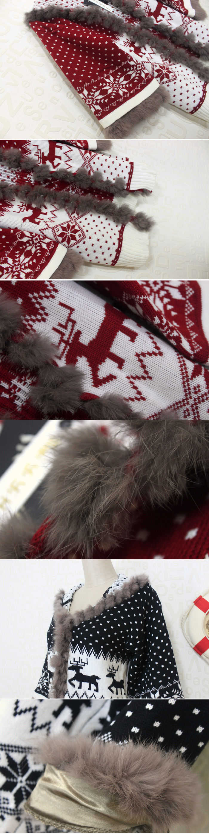 Amanda49 National and Cute Dots Deer Patterns Rough Selvedge Trumpet Quarter Sleeves Acrylic Coat For Women |