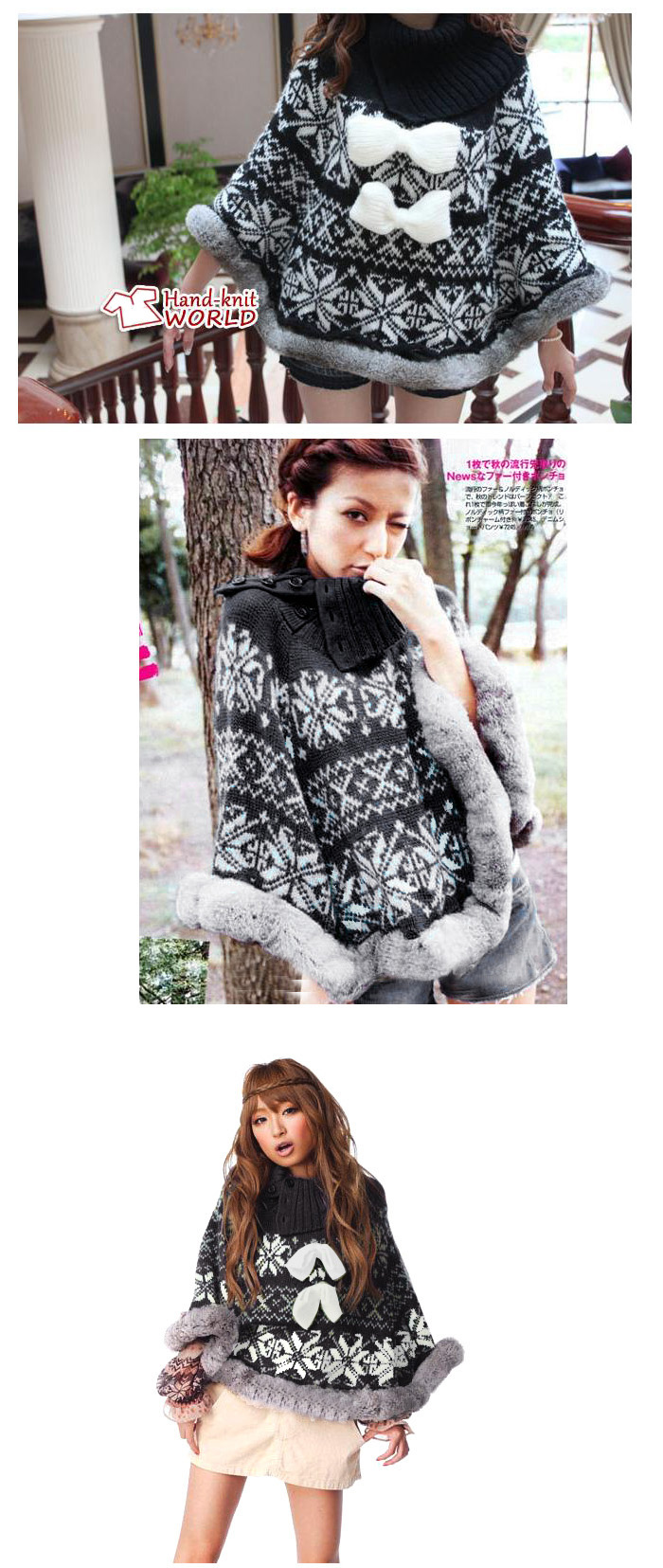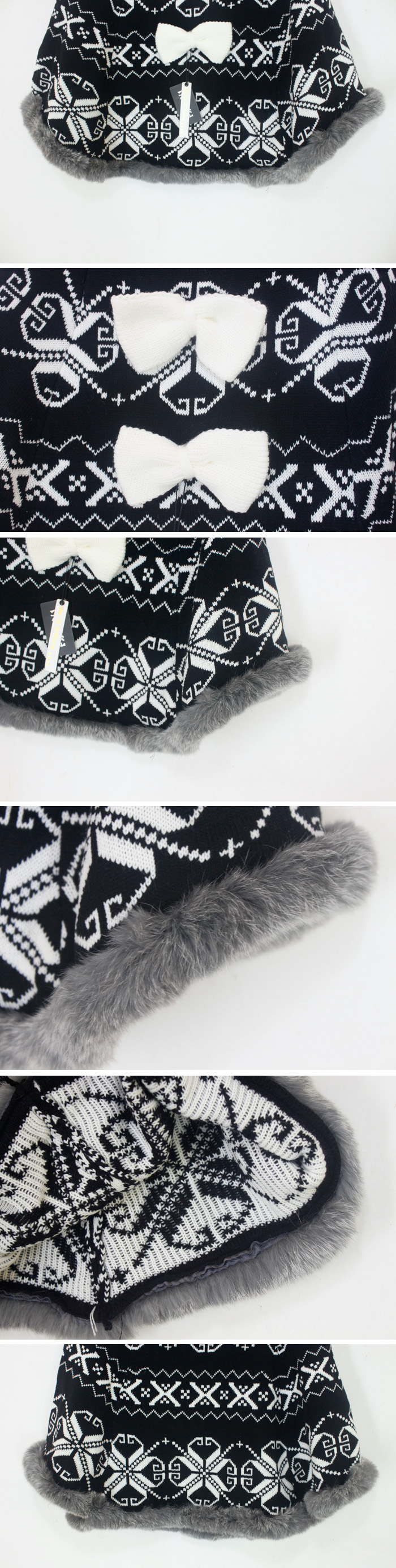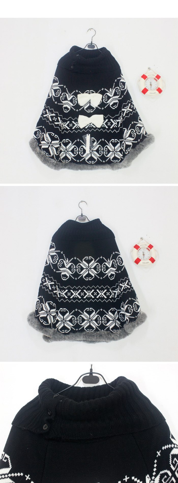 Amanda49 National Lapel Diagonal Button Embellished Double Bowknot Rough Selvedge Hem Black Acrylic Cloak For Women |