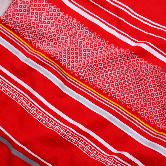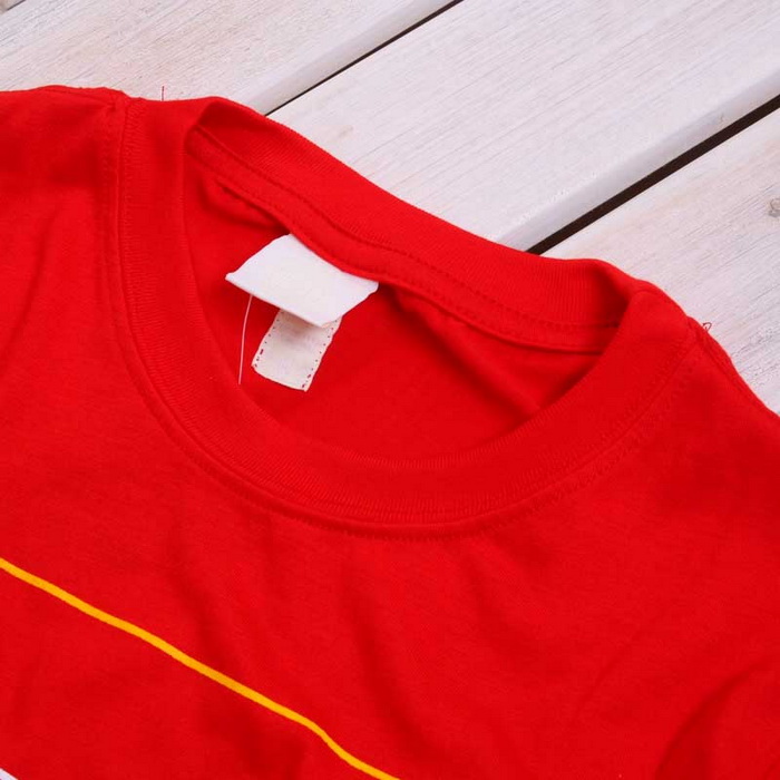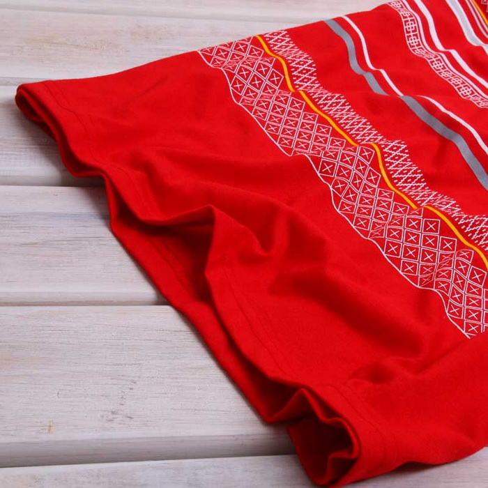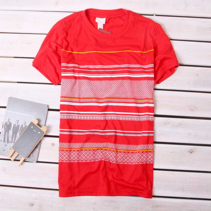 Amanda49 National Round Neckline Stripes Red Sleeves Cotton Fabric T-Shirt For Men |