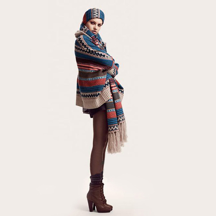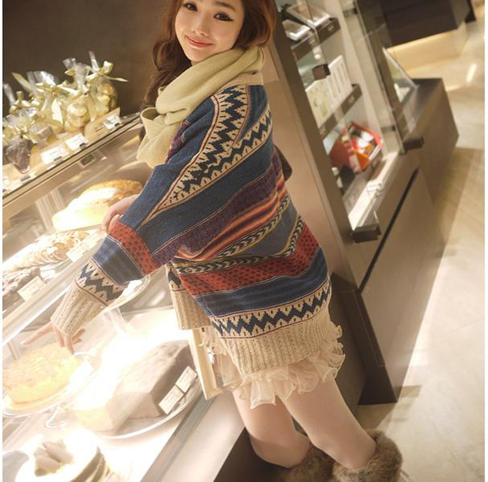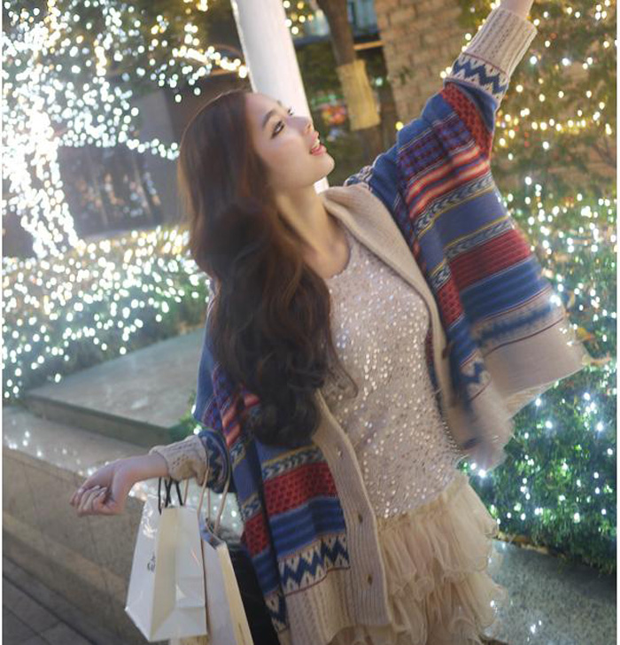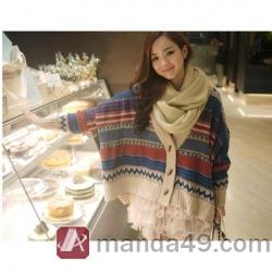 Amanda49 National Special Buttons Stripes Bat-Wing Sleeves Shawl For Women |