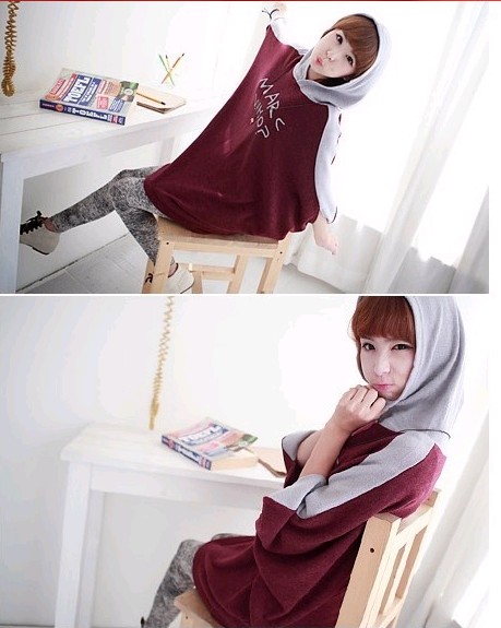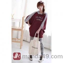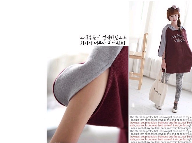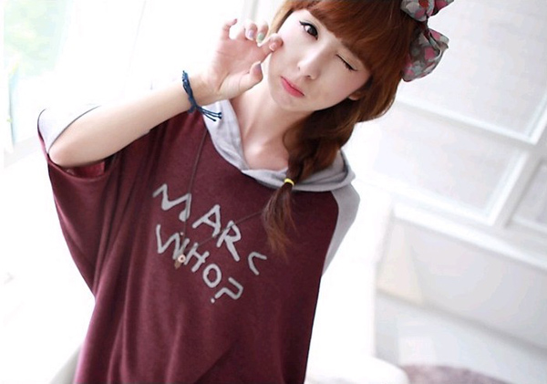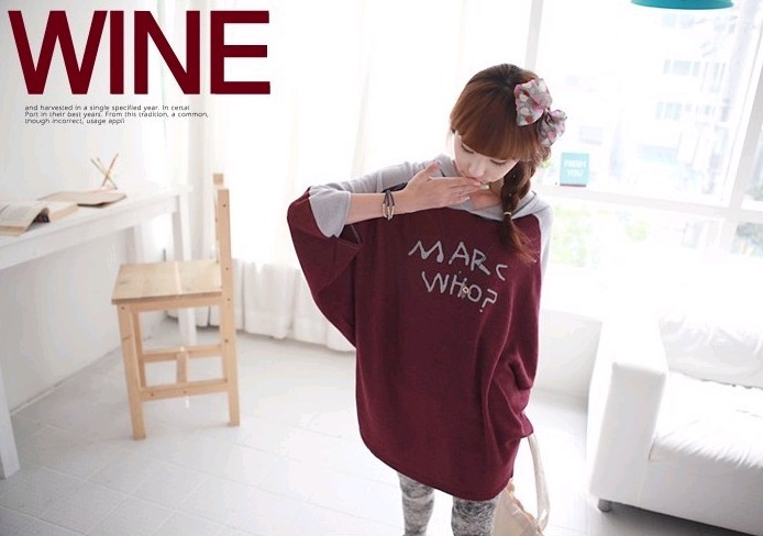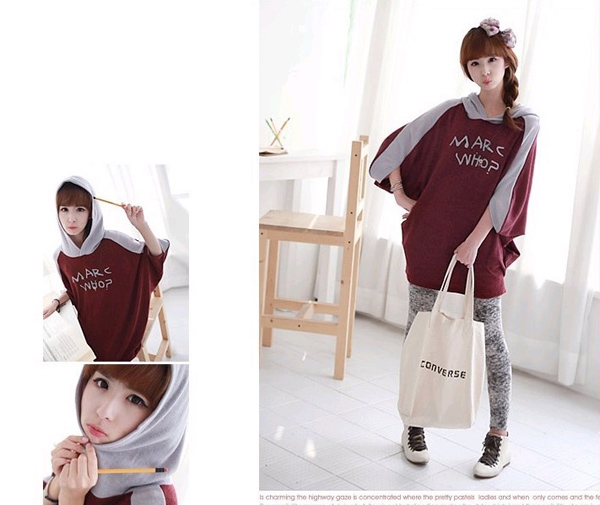 Amanda49 New Arrival Casual College Feel Letter Pattern Bat-wing Sleeve Hooded Fleeces |