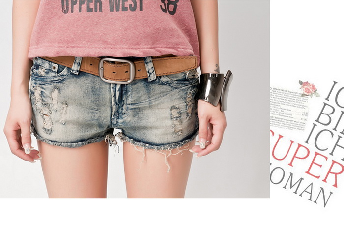 Amanda49 New Arrival Classic Ripped Hem Water Wash Hot Jeans |