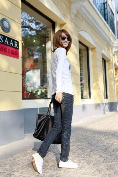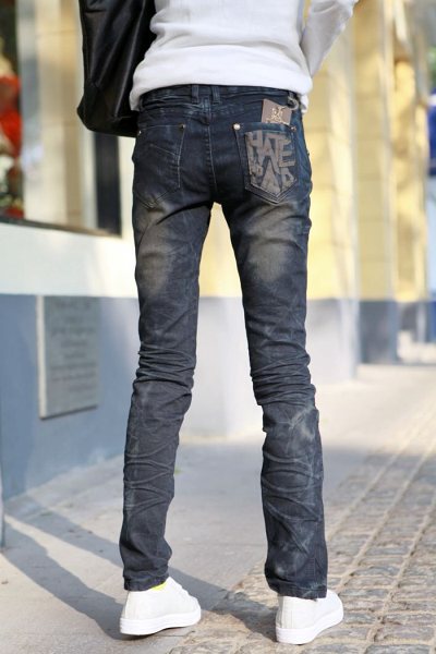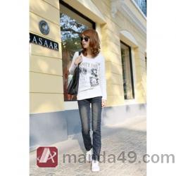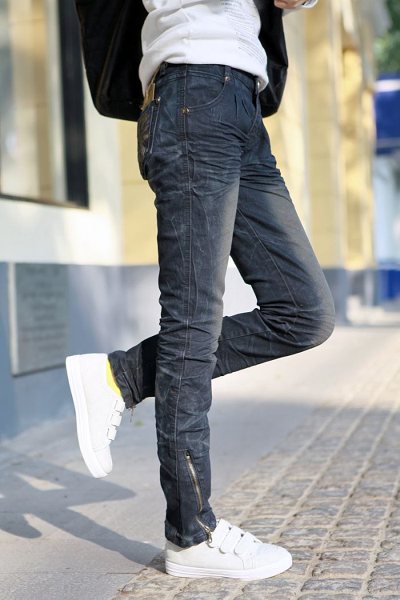 Amanda49 New Arrival Inclined Zipper Embellished Leg Opening Pecil Jeans |