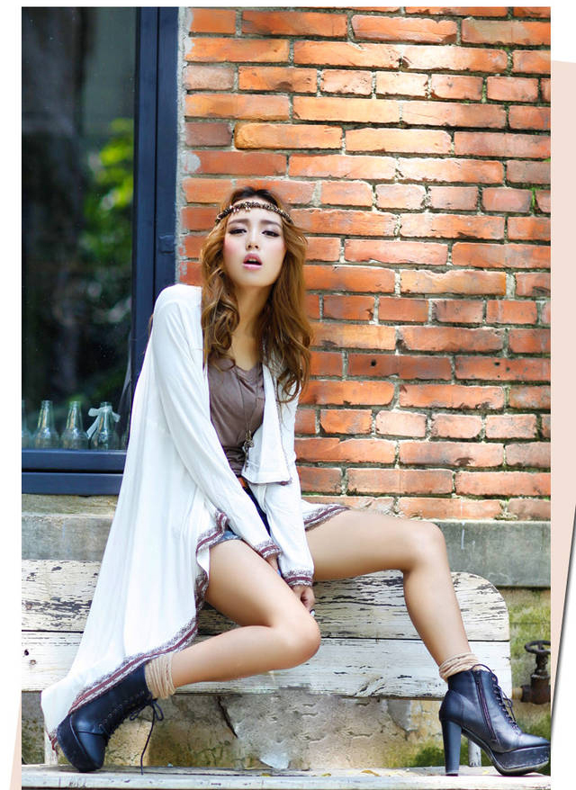 Amanda49 New Arrival Knitting White Lace Embellish Irregular Design Coat |